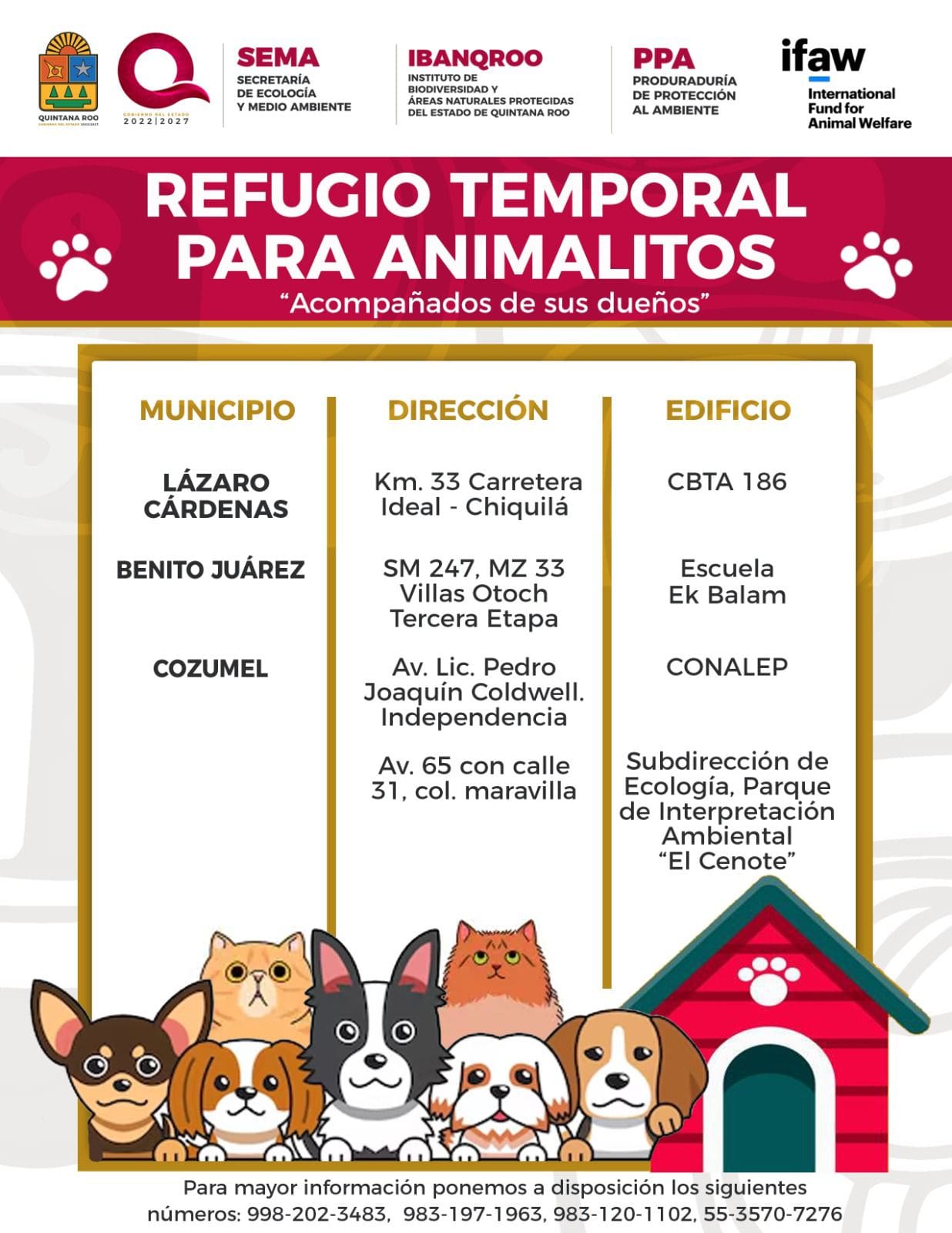 Para mayores informes, el gobierno de Quintana Roo puso a disposición los números 998-202-3483, 983-197-1963,983-120-1102 y el 55-3570-7276.