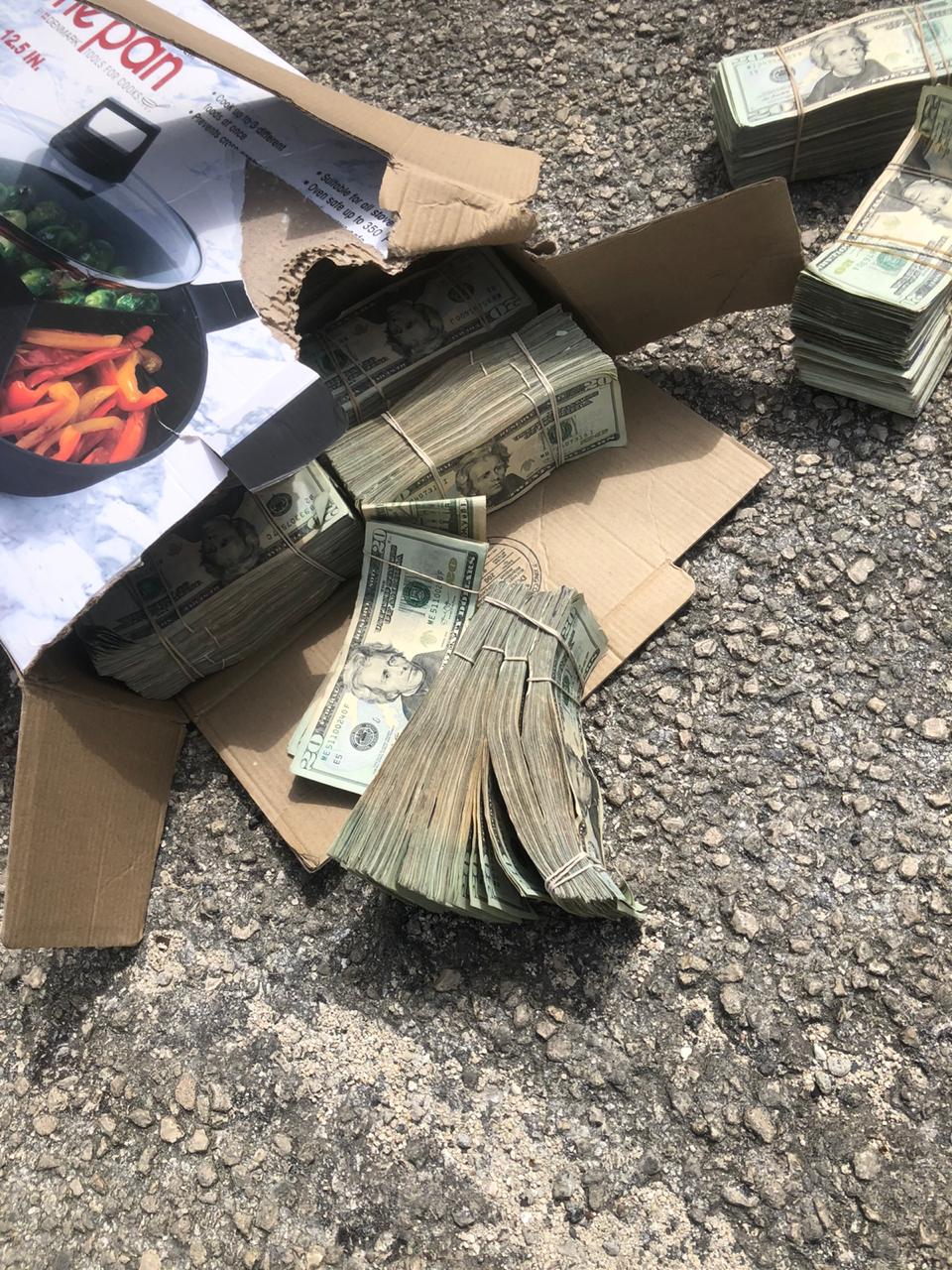 Dicho monto quedó regado sobre el pavimento cerca de una camioneta pickup, ante la mirada de los testigos, 300 mil dólares equivalen a más de seis millones 720 mil pesos con el tipo de cambio.