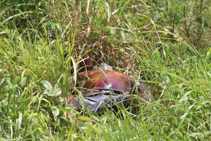 Los malos olores hicieron que vecinos detectaran este cuerpo, en un área verde junto a la avenida Jacinto Pat, entre el Arco Vial y Chemuyil. Llamando al 911.