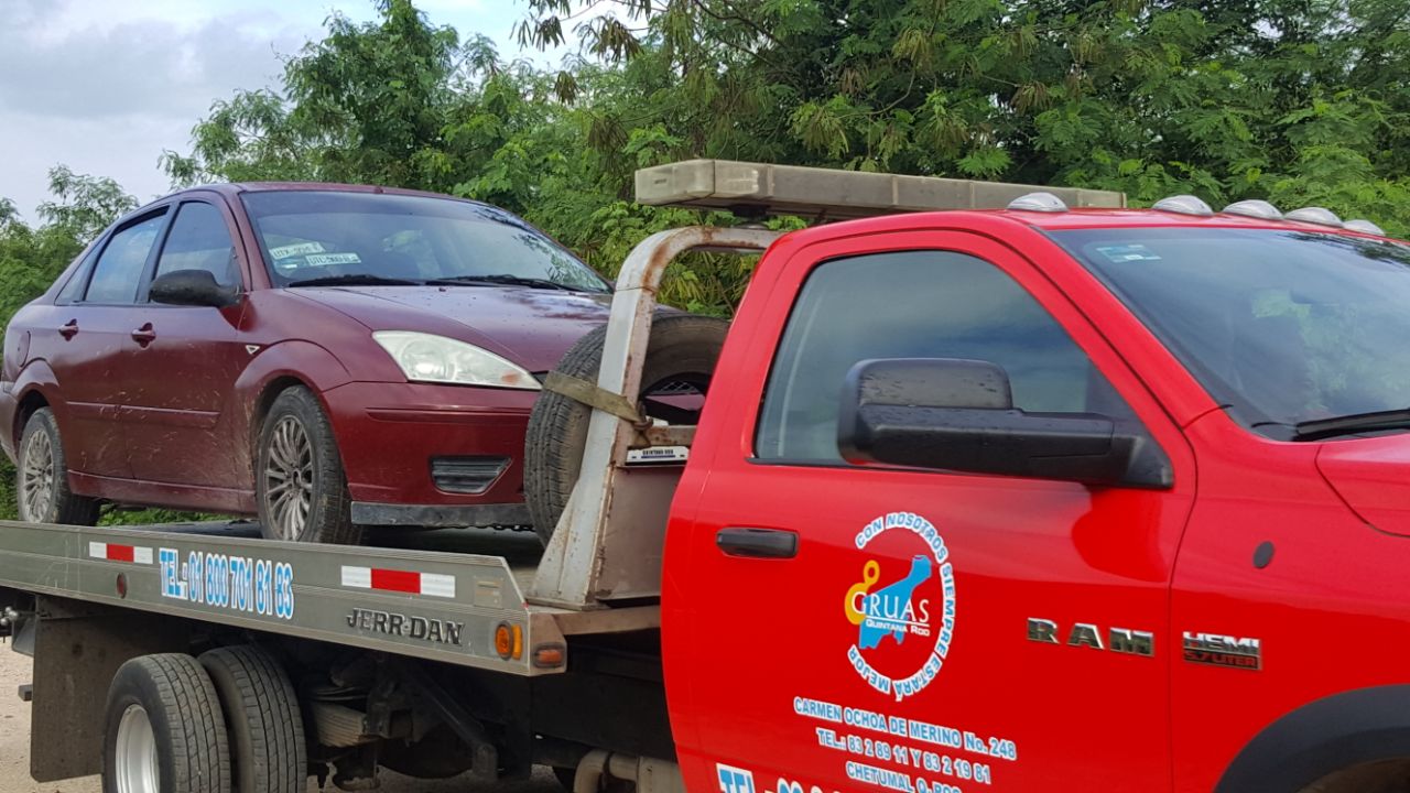 La Vicefiscalía de la zona centro indicó que un automóvil Ford Focus, con el que se supone se ejecutó el crimen, fue encontrado en el tramo carretero Chunhuhub-Vallehermoso, desde donde fue trasladado en grúa.