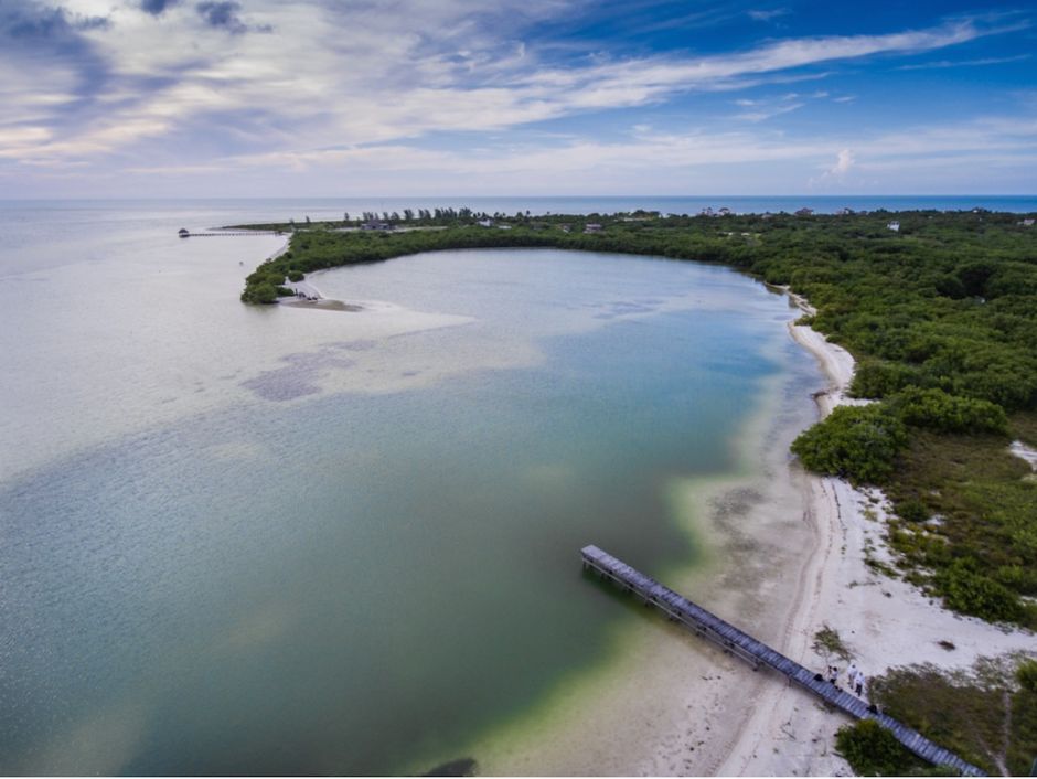 La pequeña y esbelta isla está situada al norte de la península de Yucatán, en el Golfo de México.