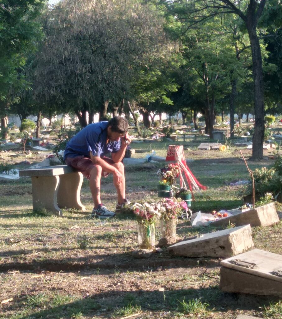 Sin embargo, 5 años después de la tragedia, su papá sigue compartiendo momentos con su hijo, tal y como se lo ve en la fotografía, junto a su tumba, la cual está adornada con los colores del club San Martín.