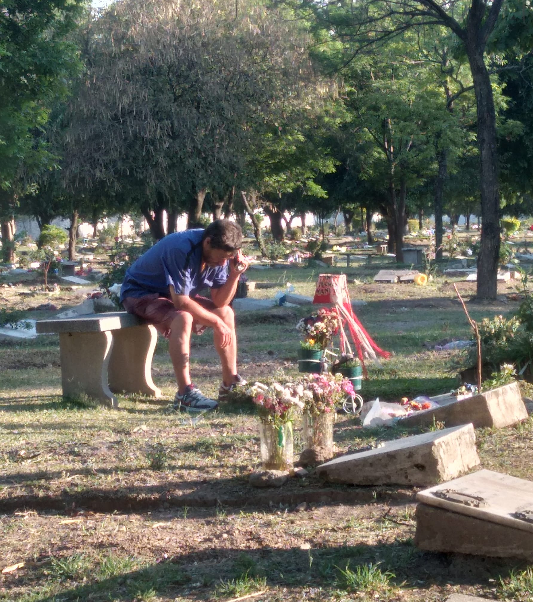 La foto del papá con la tumba de su hijo escuchando el futbol