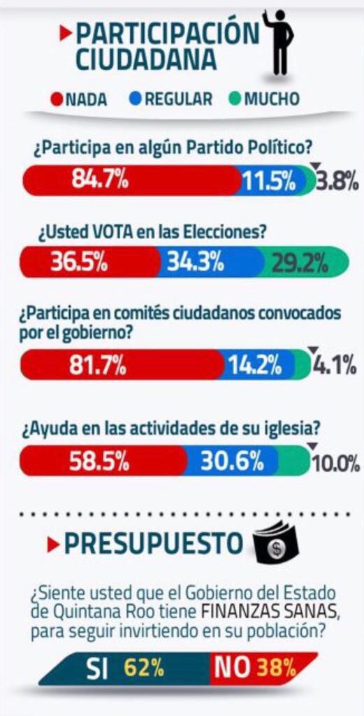 “La deuda exorbitante estrangulaba la operatividad cotidiana del aparato burocrático, prácticamente se gastaba en sueldos y compensaciones, dejando de lado atender las demandas de la población”, continuó Lizárraga Cubedo. ”Por ello, una interpretación de los datos que este estudio ha arrojado es también, el que la gente crea que el gobierno es rico y tiene dinero suficiente y no necesite de la ayuda de nadie para resolver los problemas, esa postura hace naturalmente que se le reclame mucho más al gobierno de Carlos Joaquín, sin tomar en cuenta que ha sido él quien tuvo el tino de elegir a un equipo experto en sanear las finanzas para poder atender los reclamos de la gente”.