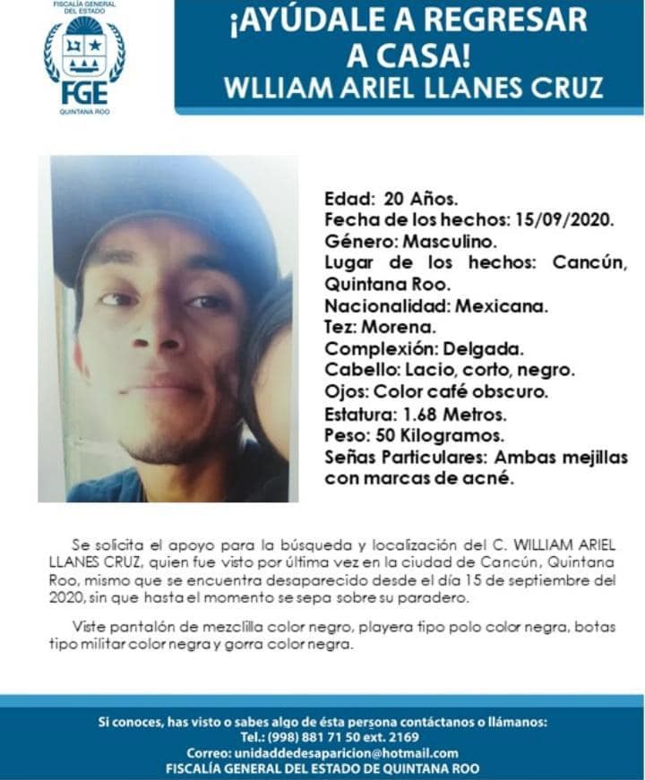 Al parecer se trata de William Ariel Llanes Cruz, de 20 años de edad, quién se desempeñaba como trabajador y desde el pasado 15 de septiembre, tenía un reporte de desaparecido.