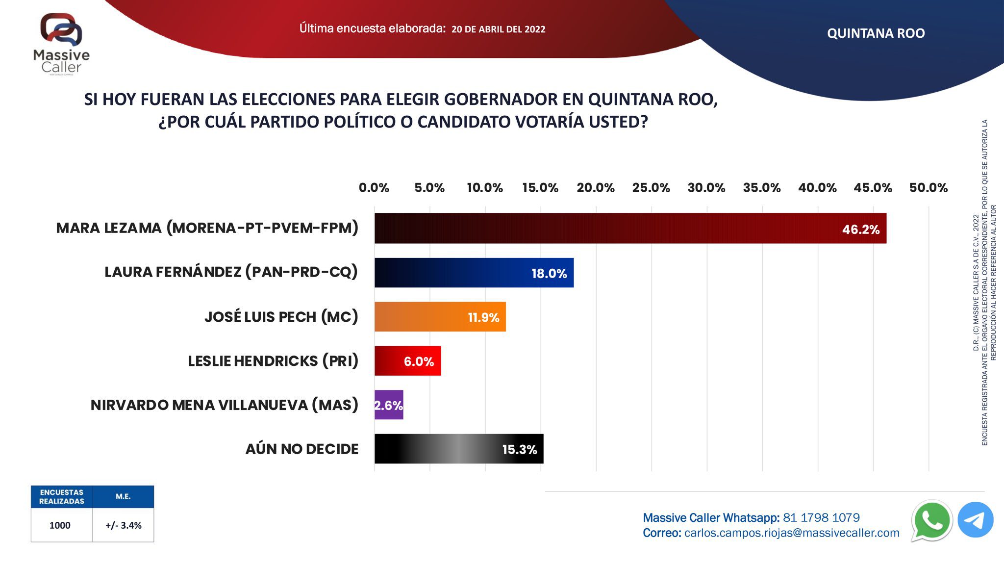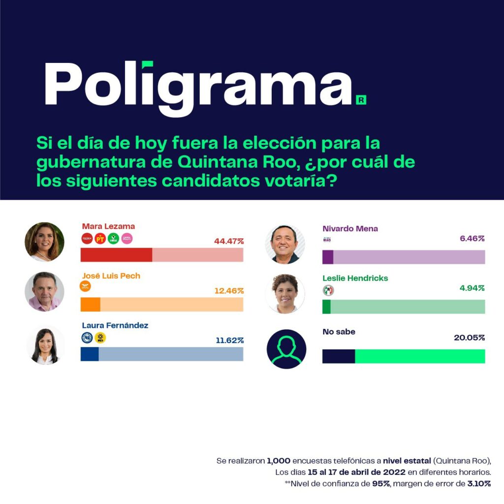 Te puede interesar: Encuesta de Poligrama le da amplísima ventaja a Mara Lezama en Quintana Roo