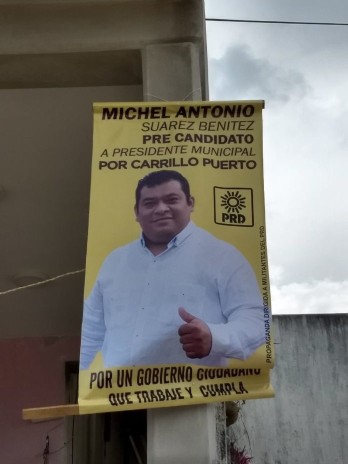 Felipe Carrillo Puerto.- En diversas calles de esta cabecera municipal surgieron pendones con la imagen de Michel Antonio Suárez Benítez, quien es impulsado por la diputada federal Ivanova Pool Pech para la candidatura a la presidencia municipal.