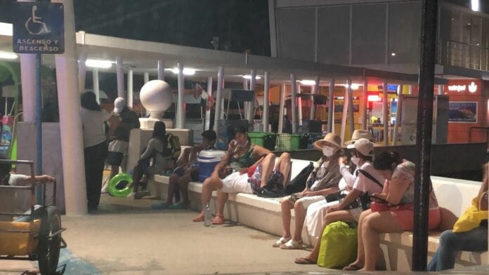 Y es que la fila para poder alcanzar el transporte marítimo es hasta de dos horas, o el riesgo se no alcanzarlo es pernoctar en la Isla.