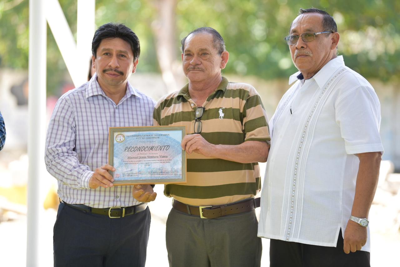 Al acudir a la entrega de un domo en la escuela secundaria número 15, “Zamná”, resaltó que la administración que encabeza tiene la convicción de mejorar las condiciones de vida de los ciudadanos del noveno municipio, por ello, se están atendiendo sus necesidades primordiales en la cabecera municipal y en los próximos días acudirá a las comunidades del Corredor Turístico Tulum-Cobá, Zona Maya, así como de Akumal y Chemuyil para entregar obras diversas.