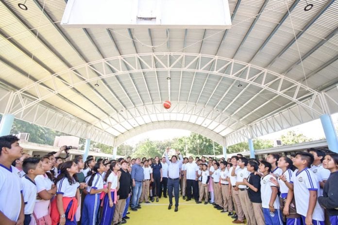 Por último, el presidente municipal, manifestó que con la entrega del domo de la secundaria número 15, “Zamná”, se está atendiendo una añeja petición de maestros, alumnos y padres de familia, ya que las administraciones pasadas no habían atendido esta situación, por lo que se estará beneficiando a poco más de 950 alumnos en los turnos matutino y vespertino.