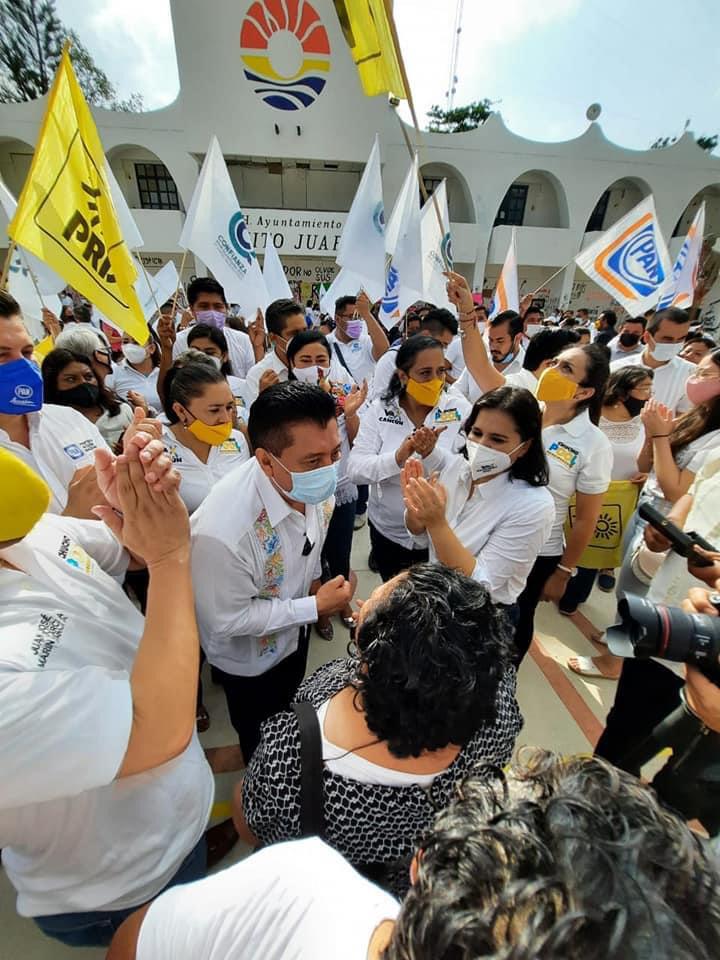 En los municipios de Benito Juárez y Puerto Morelos se va en candidaturas comunes; en Lázaro Cárdenas el Partido Acción Nacional va sólo; mientras que en los otros ocho municipios se consolidó la alianza “Va Por Quintana Roo” integrada por los cuatro partidos, PAN, PRI, PRD y Confianza por Quintana Roo.