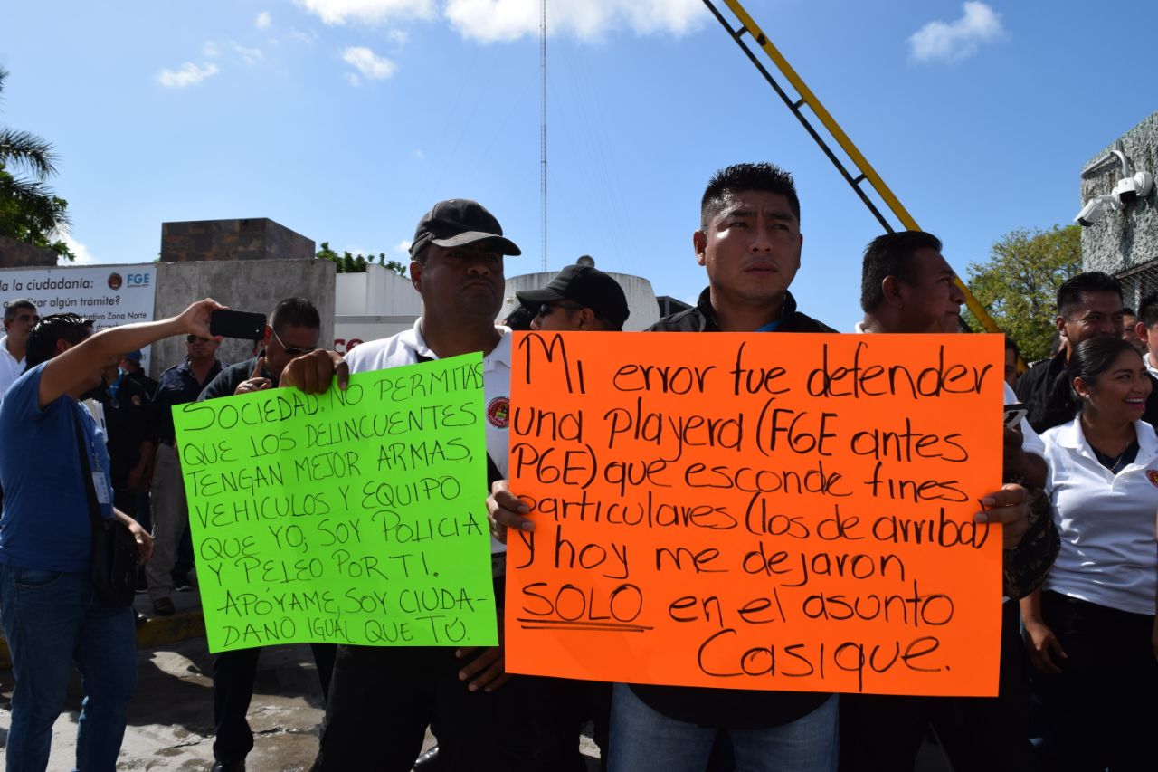 “Trabajamos en horarios excesivos. En Cancún, hasta por tres días seguidos. Nos piden el máximo, pero no hay gasolina, no hay combustible, los vehículos están deteriorados. Exigimos una auditoría a la Fiscalía, y que el fiscal nos dé la cara. Exigimos la destitución del fiscal antes su falta de compromiso con nosotros”, señaló el elemento inconforme.