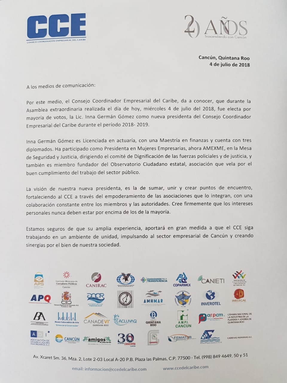 InicioQuintana RooCancúnInma Germán, nueva presidenta del CCE