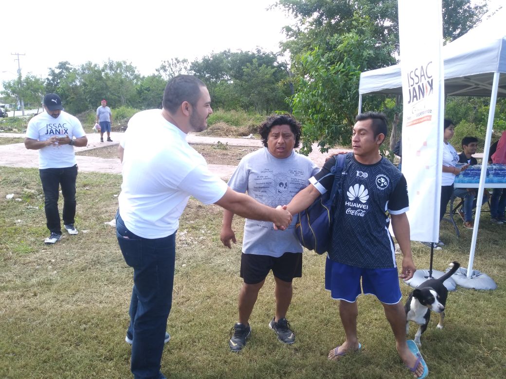 Issac Janix Alanís acudió a uno de los módulos instalados, en el campo llanero del Fraccionamiento Vista Real, en la Región 252, donde platicó con jugadores ahí presentes.