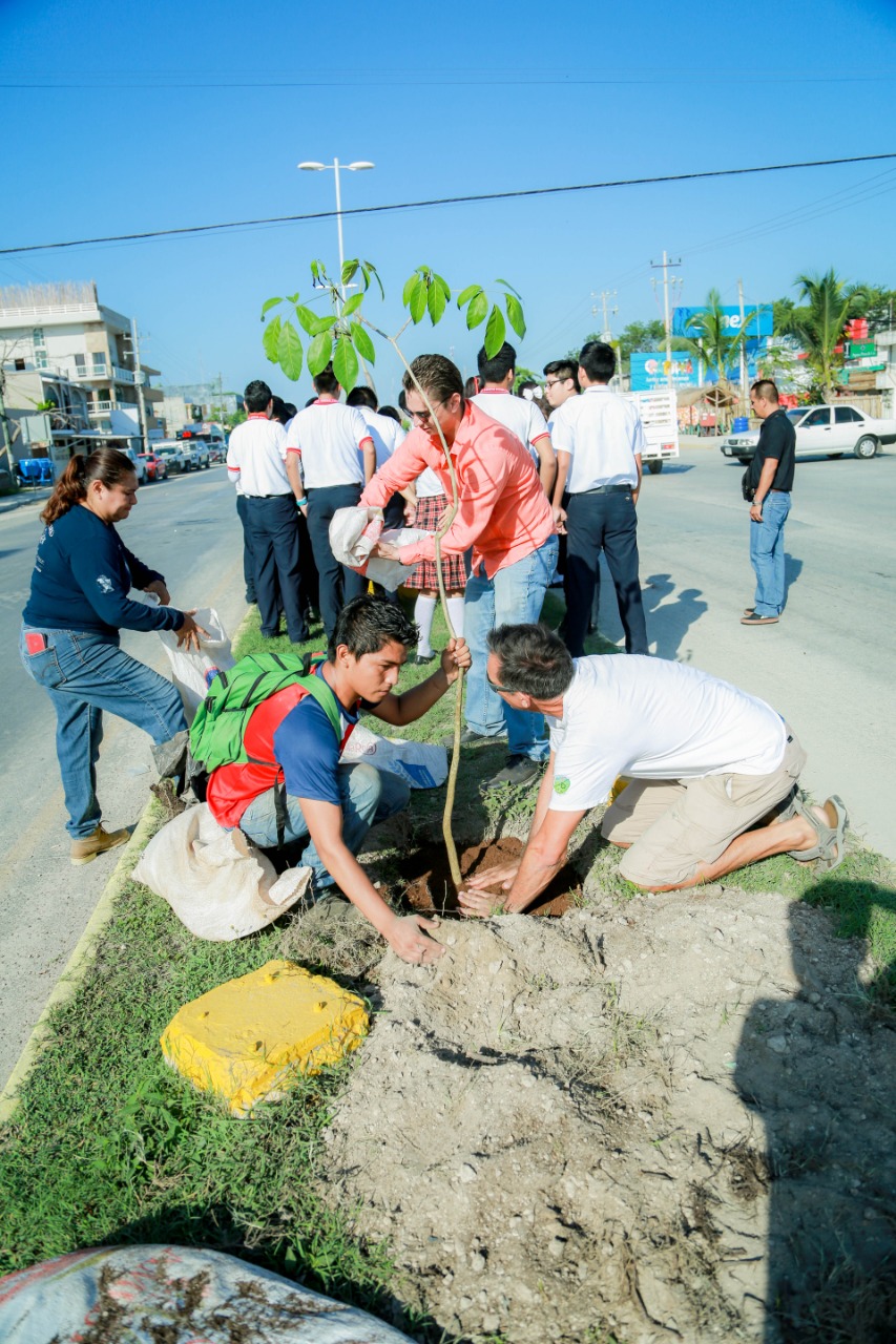 En poco más de una hora, el ejército de estudiantes y personas ecologistas sembraron decenas de árboles sobre el camellón de la avenida Tulum, en el tramo que corresponde a las avenidas Cobá y Satélite, con lo cual aportan su esfuerzo para que el municipio cuente con mayores espacios verdes y se brinde una mejor urbana para la ciudadanía.