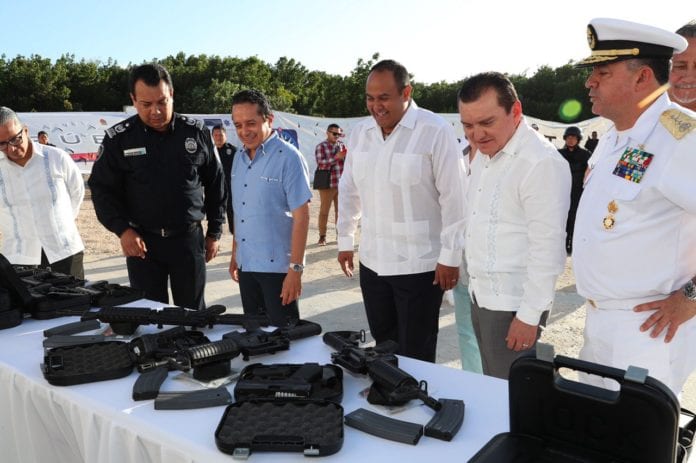 El gobernador de Quintana Roo, junto con el presidente municipal Juan Luis Carrillo Soberanis, supervisó el nuevo equipo y el armamento que estarán a disposición de los elementos de la corporación municipal, quienes han recibido capacitación.