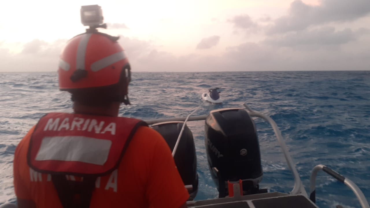 Por lo anterior, y con el fin de salvaguardar la vida humana en la mar, ordenó el zarpe inmediato de una embarcación tipo Defender de la Estación Naval de Búsqueda, Rescate y Vigilancia Marítima (Ensar) de Isla Mujeres, la cual localizó citada moto con su tripulante a bordo, en buen estado de salud.