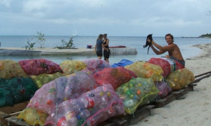 Isla Mujeres.- Como parte de combatir el cambio climático un hombre construyó su casa sobre más de 150 mil botellas de pet, a la que ha llamado Isla Joysxee.