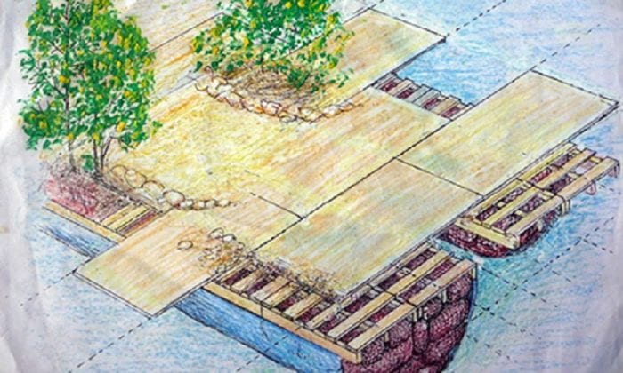 Para conseguir que su isla flotara, Richart reunió decenas de costales llenos de botellas de plástico y las ató para crear estructuras flotantes, sobre los costales colocó un piso de madera y lo cubrió con arena. Para sujetar las estructuras utilizó raíces de plantas endémicas.