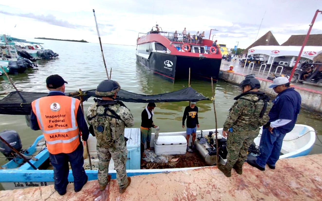 En ese sentido, se retuvo en forma precautoria 18 kilogramos de langosta y 10 de pulpo, así como la lancha y artes de pesca, quedando al resguardo de la Conapesca para los trámites administrativos correspondientes.
