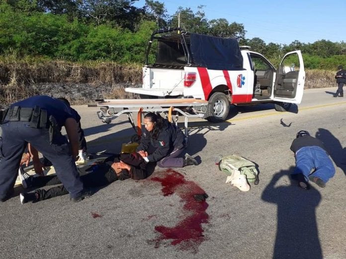 Según testigos de los hechos, el aparatoso accidente se registró la mañana de hoy sábado, cuando una familia oriunda de Playa del Carmen se dirigía en caravana de un automóvil y dos motocicletas con rumbo a Bacalar, e intempestivamente el automóvil Corsa que iba delante de ellos no se dio cuenta y quiso dar vuelta en “U”, sobre la carretera federal.