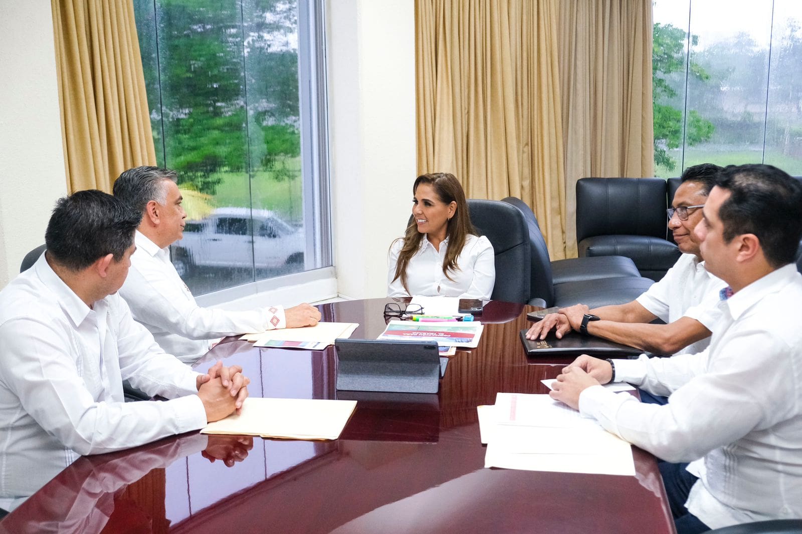 Cancún.- La Gobernadora Mara Lezama Espinosa, el Director General de Centros de Formación para el Trabajo de la Secretaría de Educación Pública, Rolando de Jesús López Saldaña y el Coordinador Nacional de los ICAT, Alejandro Samuel Colín Ramírez sostuvieron una reunión en la búsqueda de nuevas y mayores alternativas para transformar la vida de las y los quintanarroenses.