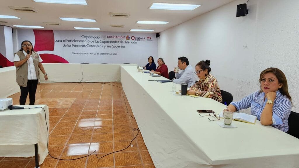 En cumplimiento al Protocolo para la Prevención, Atención y Sanción para los Casos de Acoso Sexual, Hostigamiento Sexual y Aprovechamiento Sexual en las Dependencias, Órganos Administrativos Desconcentrados y Entidades del Poder Ejecutivo del Estado de Quintana Roo y con el apoyo del IQM, la SEQ participó en el taller de capacitación dirigido a las Personas Consejeras y sus Suplentes.