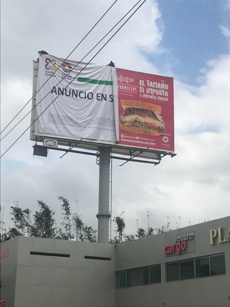 En tanto, personal de la Dirección de Imagen Urbana y Protección Civil comenzaron a clausurar anuncios espectaculares, tapando esta publicidad con lonas con el sello del Ayuntamiento y la leyenda “anuncio en suspensión”.