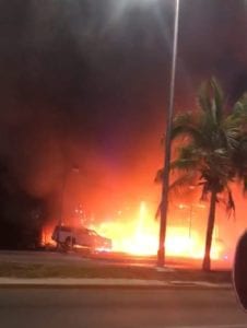 Rápidamente, el lugar y sus vehículos comenzó a arder.
