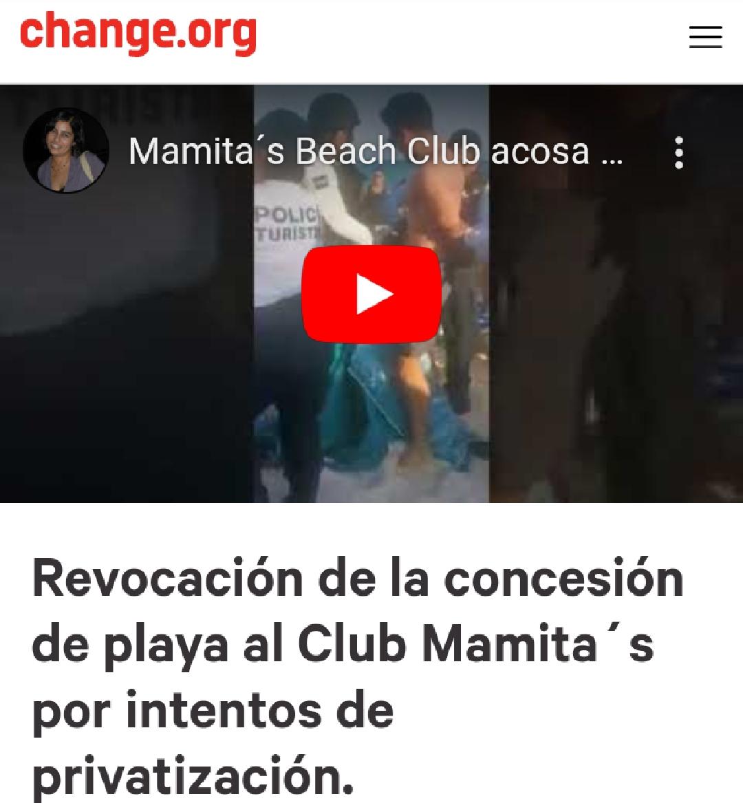 Luego de los lamentables hechos ocurridos ayer en Playa Mamita´s, donde dos turistas originarios de la Ciudad de México fueran detenidos con exceso de rudeza por Policías Municipales a petición de los administradores del club esa zona, se ha lanzado en la plataforma Change.org una petición para que se le retire la concesión a este sitio.