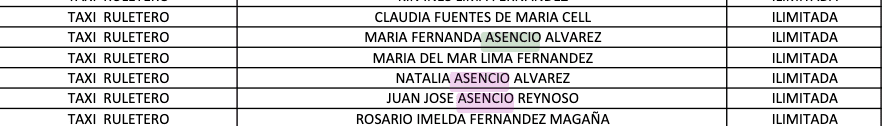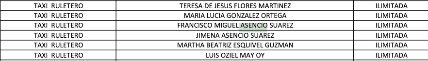 Quienes aparecen con concesiones de taxi según padrón del 2015 son Juan José Asencio Reynoso (tío de Estefanía Mercado) y sus primos Francisco Miguel Asencio Suárez, Marcia Patricia Asencio Suárez y Jimena Asencio Suárez.