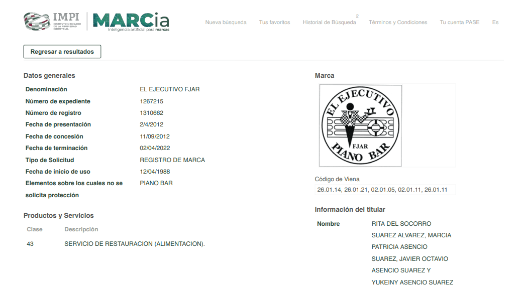 Marcia Patricia Asencio Suárez, Javier Octavio Asencio Suárez y Yukeiny Asencio Suárez, primos de Estefanía Mercado, tienen registrado el nombre de El Ejecutivo que se comenzó a usar desde 1988, y cuya última vigencia concluyó en abril de este 2022.