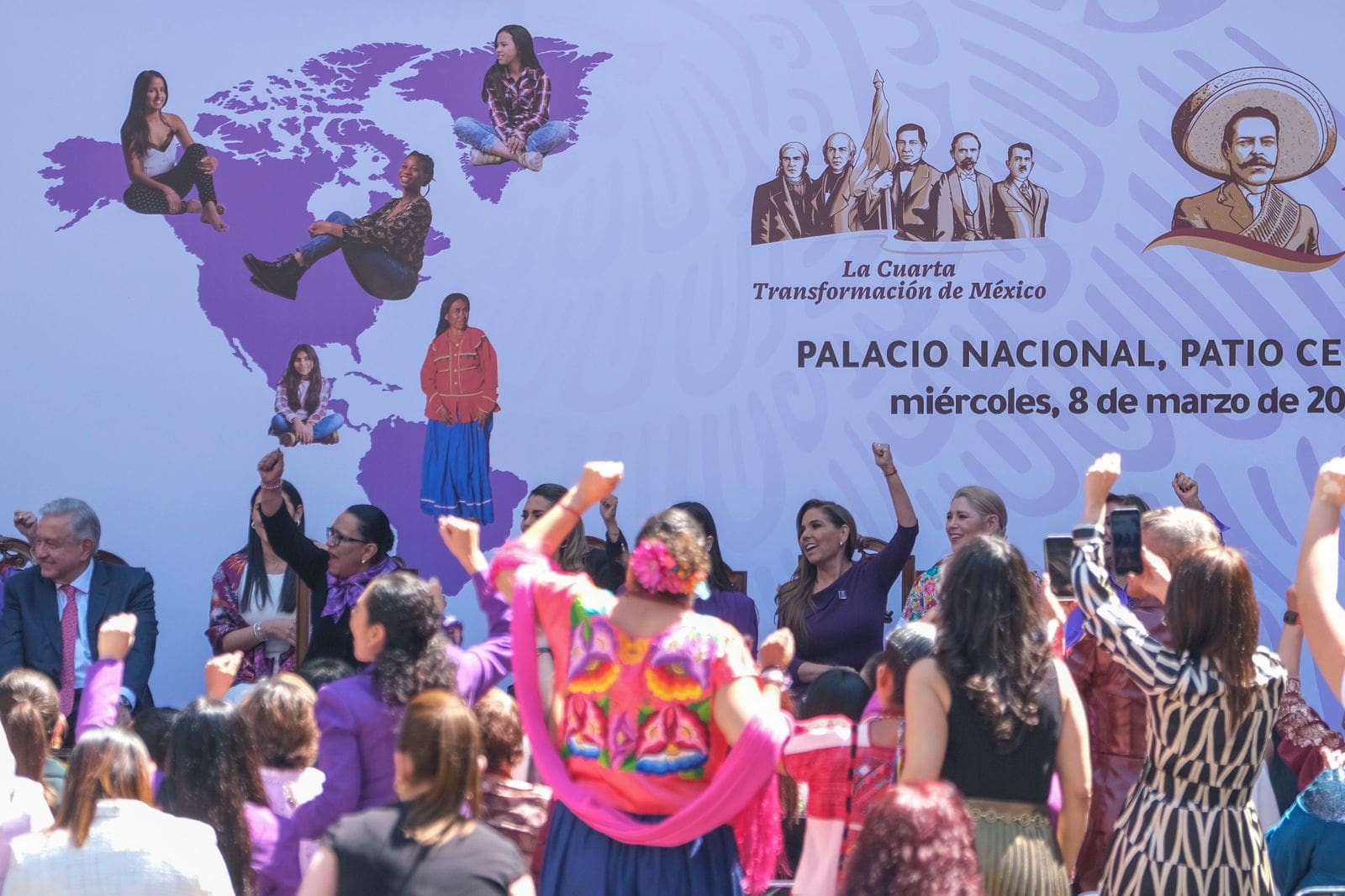 Chetumal.- La gobernadora Mara Lezama Espinosa asistió al evento conmemorativo por el Día Internacional de la Mujer que encabezó el presidente Andrés Manuel López Obrador en el patio central del Palacio Nacional y en que se reconoció a las mujeres que hoy tienen la conducción del proceso de transformación del país.