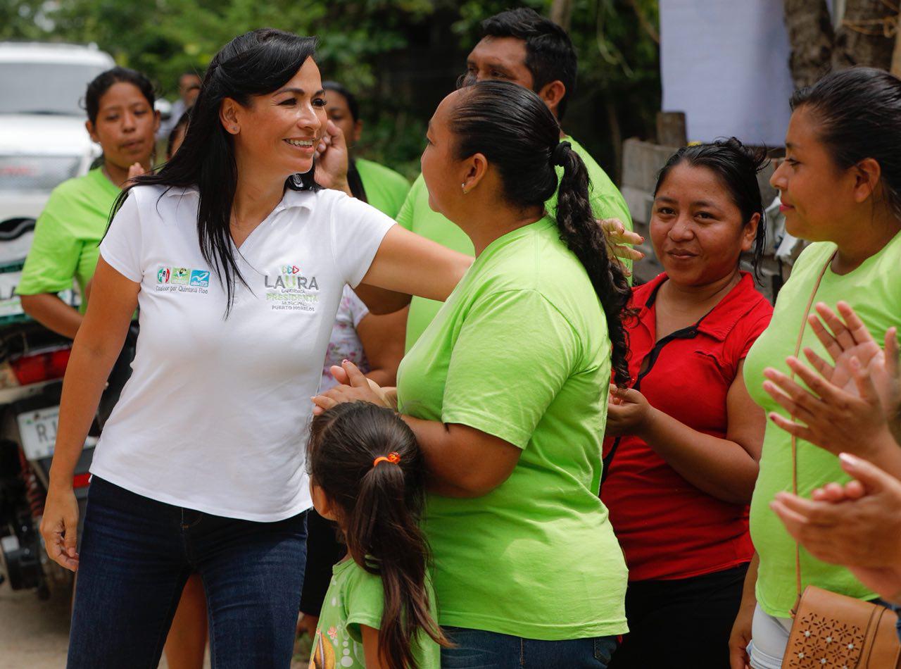 Leona Vicario, Puerto Morelos, Quintana Roo.- La candidata de la coalición Por Quintana Roo, integrada por los partidos Revolucionario Institucional, Verde Ecologista de México y Nueva Alianza, a la presidencia municipal de Puerto Morelos, Laura Fernández Piña, fortalece su proyecto de gobierno con la participación ciudadana durante las reuniones vecinales y caminatas que realiza en esta comunidad.