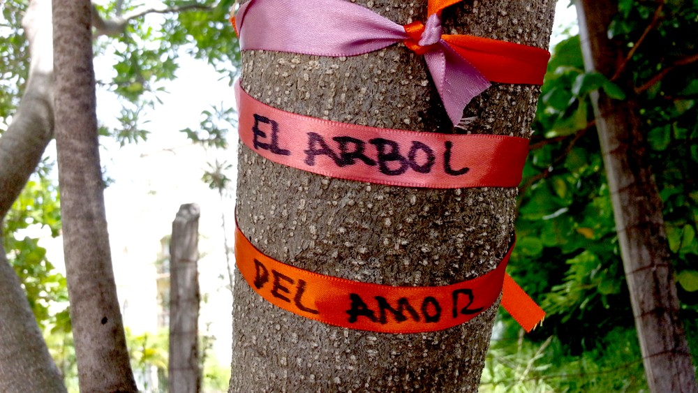 El árbol del amor está en el callejón del arte, ubicado entre la calle 6 y 4 y entre las avenidas 10 y 15. en Playa del Carmen, Quintana Roo, México.