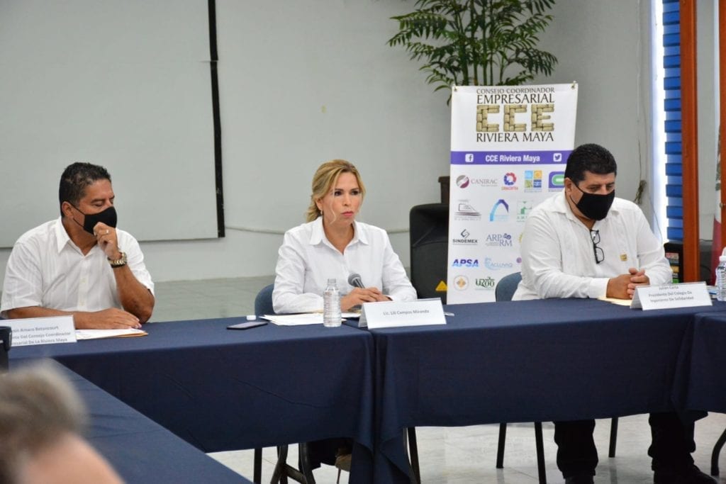 Playa del Carmen.- Lili Campos, candidata a la presidencia municipal de Solidaridad, acudió a la invitación del Consejo Coordinador Empresarial de la Riviera Maya, que por medio de su presidente Lenin Amaro Betancourt, la convocaron para conocer de viva voz sus propuestas de gobierno.