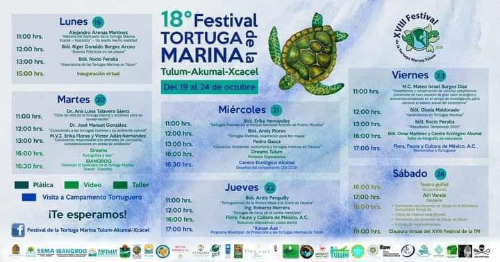 El Festival de la tortuga marina es una tradición que esté 2020 cumple 18 años de llevarse a cabo en Tulum, en el que los organizadores celebran el final de la temporada de anidación de tortugas marinas en el municipio de Tulum.