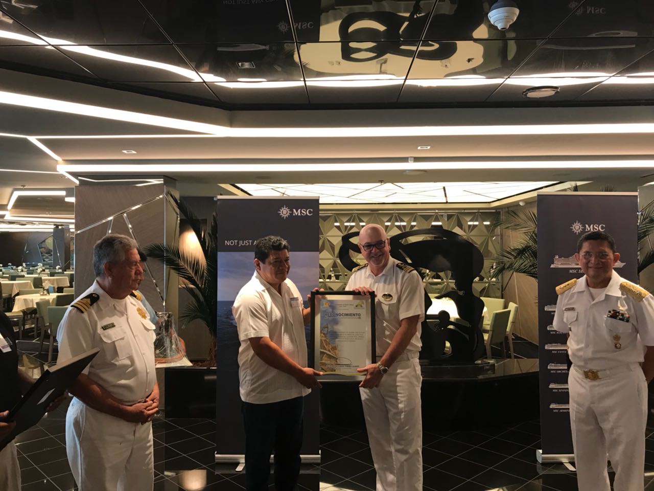 A Torres Llanes le acompañaron Ramiro Del Toro, director de Operaciones de la Terminal Marítima Costa Maya; Otto Quevedo, gerente general de la misma terminal; al capitán de puerto, Armando Fierro; el Vicealmirante de la 11 Zona Naval, José Martínez; Víctor Castro, gerente general de Turismo Aviomar y Marco Souza Carmichel, coordinador general ACS.