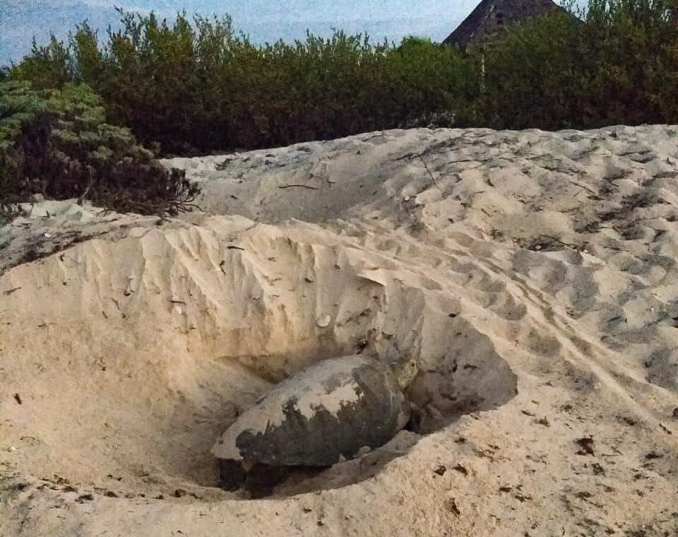 Puerto Morelos, Quintana Roo, 2 de mayo de 2020.- Personal de la Dirección de Ecología del Ayuntamiento atendió el primer arribo de tortugas marinas de la temporada 2020, dentro de las acciones del programa de protección y conservación de la especie que se lleva a cabo cada año, entre abril y noviembre, informó la presidenta municipal Laura Fernández Piña.