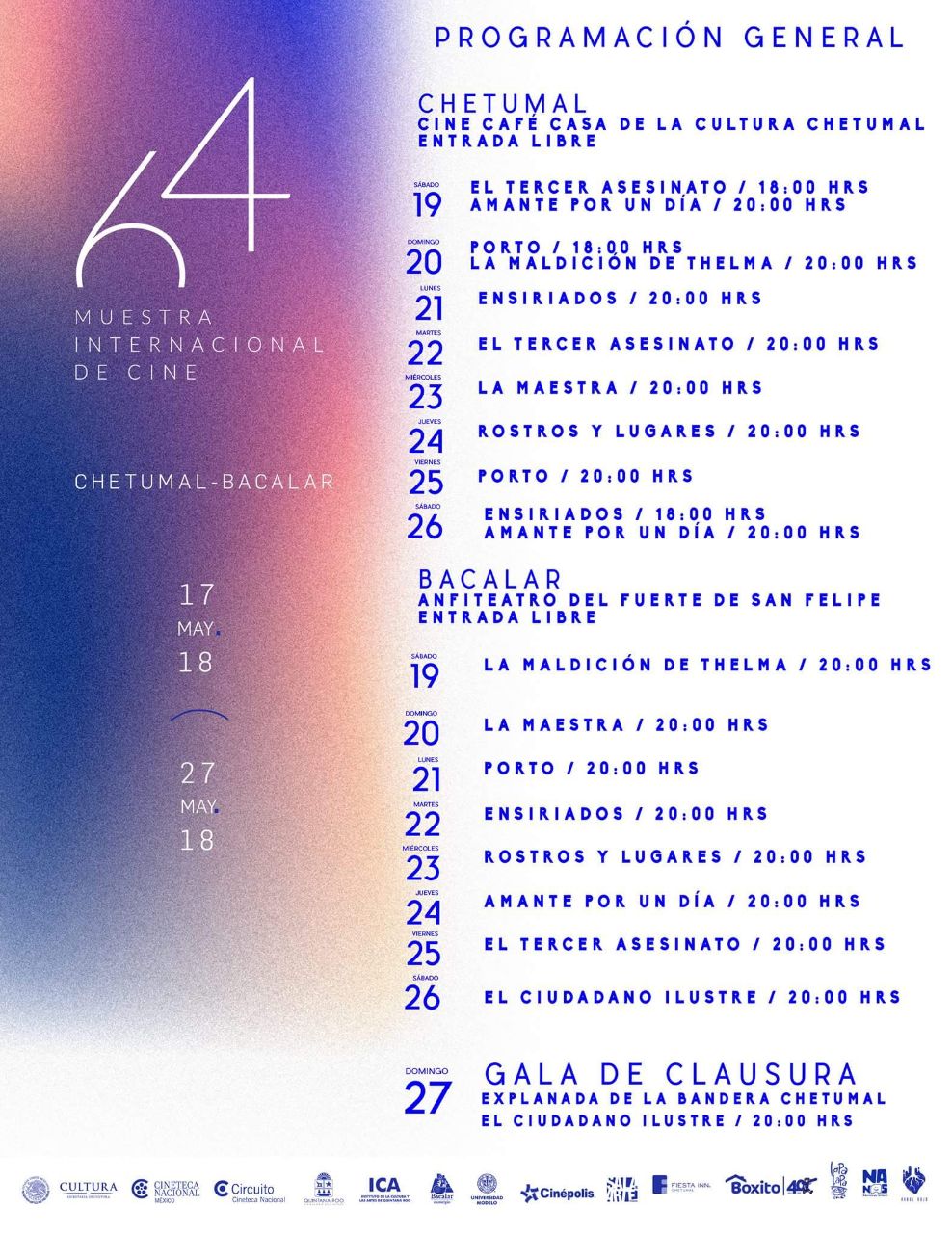 Cancún.- Chetumal y Bacalar serán sede de la 64 Muestra Internacional de Cine.