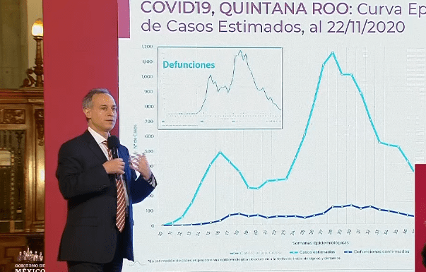 “Quintana Roo, muy buen control desde la semana 29, realmente es un caso de manejo difícil, no por la densidad poblacional, sino por la movilidad y el enorme reto de mantener activa una economía que depende casi por completo del turismo”, señaló el funcionario.