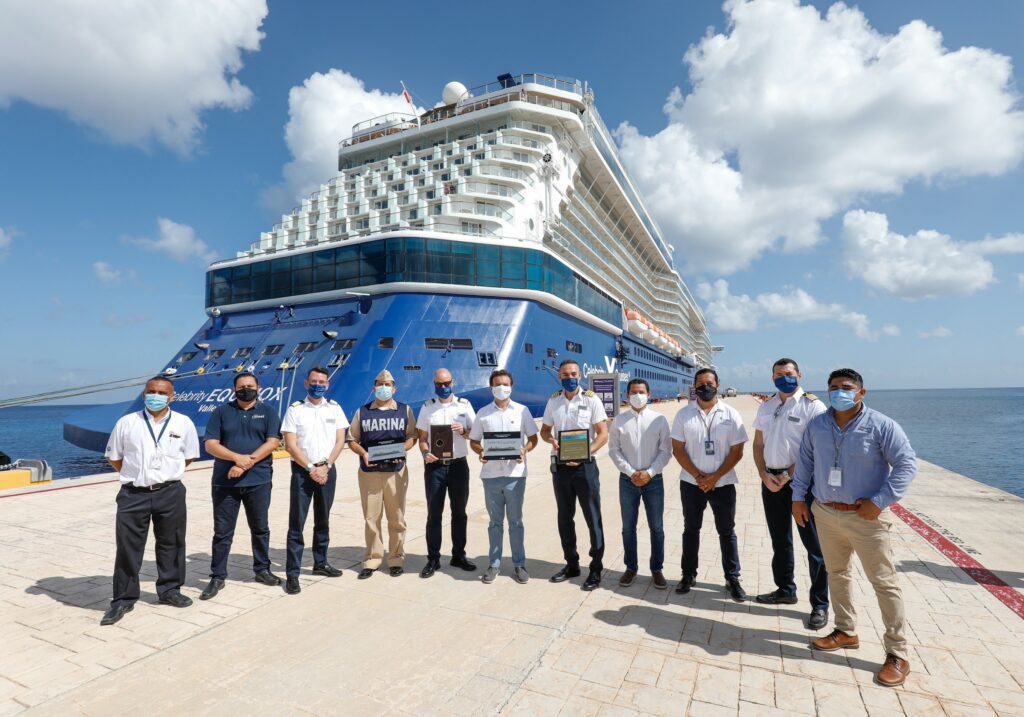 “De nueva cuenta le dimos la bienvenida al Celebrity Equinox, que retornó a Cozumel en esta nueva etapa de la pandemia, siendo el segundo crucero de la empresa Celebrity que llega a la isla”, señaló Pedro Joaquín.