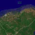 Pero, en un caso más extremo, que considere el completo deshielo de las aguas de los polos, se perdería casi por completo la Península de Yucatán y Tabasco quedaría bajo el agua.