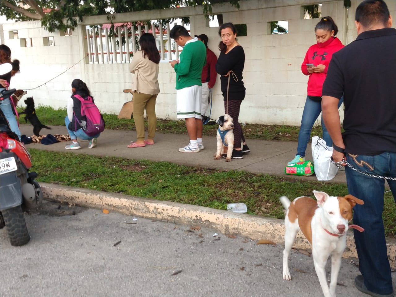 Tanto ayer sábado como hoy domingo, a pesar del frío matutino, cientos de playenses se levantaron a las seis de la mañana para alcanzar ficha para este programa gratuito, generándose una fila de dueños y mascotas que prácticamente rodeaba la manzana, afuera de una escuela primaria en la avenida Constituyentes, en el fraccionamiento Misión del Carmen.