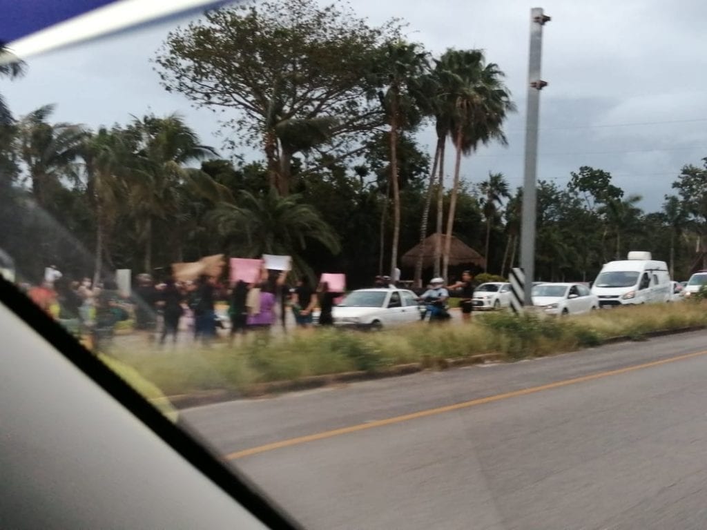 Un grupo de ciudadanos inconformes de Puerto Aventuras, así como activistas feministas, bloquearon temporalmente la carretera federal 307 en su tramo Tulum-Playa del Carmen, justo afuera del hotel Hard Rock, lugar de trabajo de Ana Gómez, víctima de feminicidio en esta delegación.