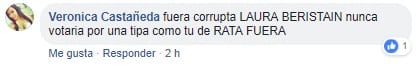 “Fuera corrupta LAURA BERISTAIN nunca votaría por una tipa como tu de RATA FUERA”