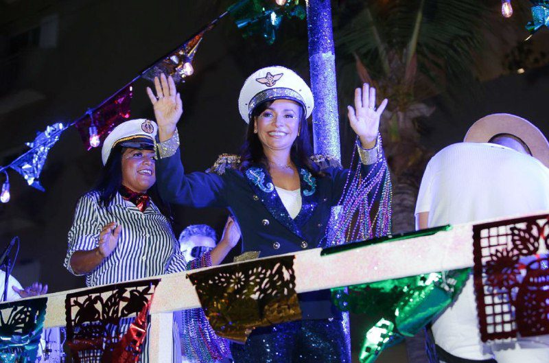 Laura Fernández participó en el tradicional último desfile de Carnaval vestida con uniforme de gala, insignias y gorra de capitana, donde convivió con más de dos mil personas al comandar el derrotero de la festividad carnestolenda en la Avenida Rafael E. Melgar, a bordo del carro alegórico “Quintana Roo Matrícula 230000904”.