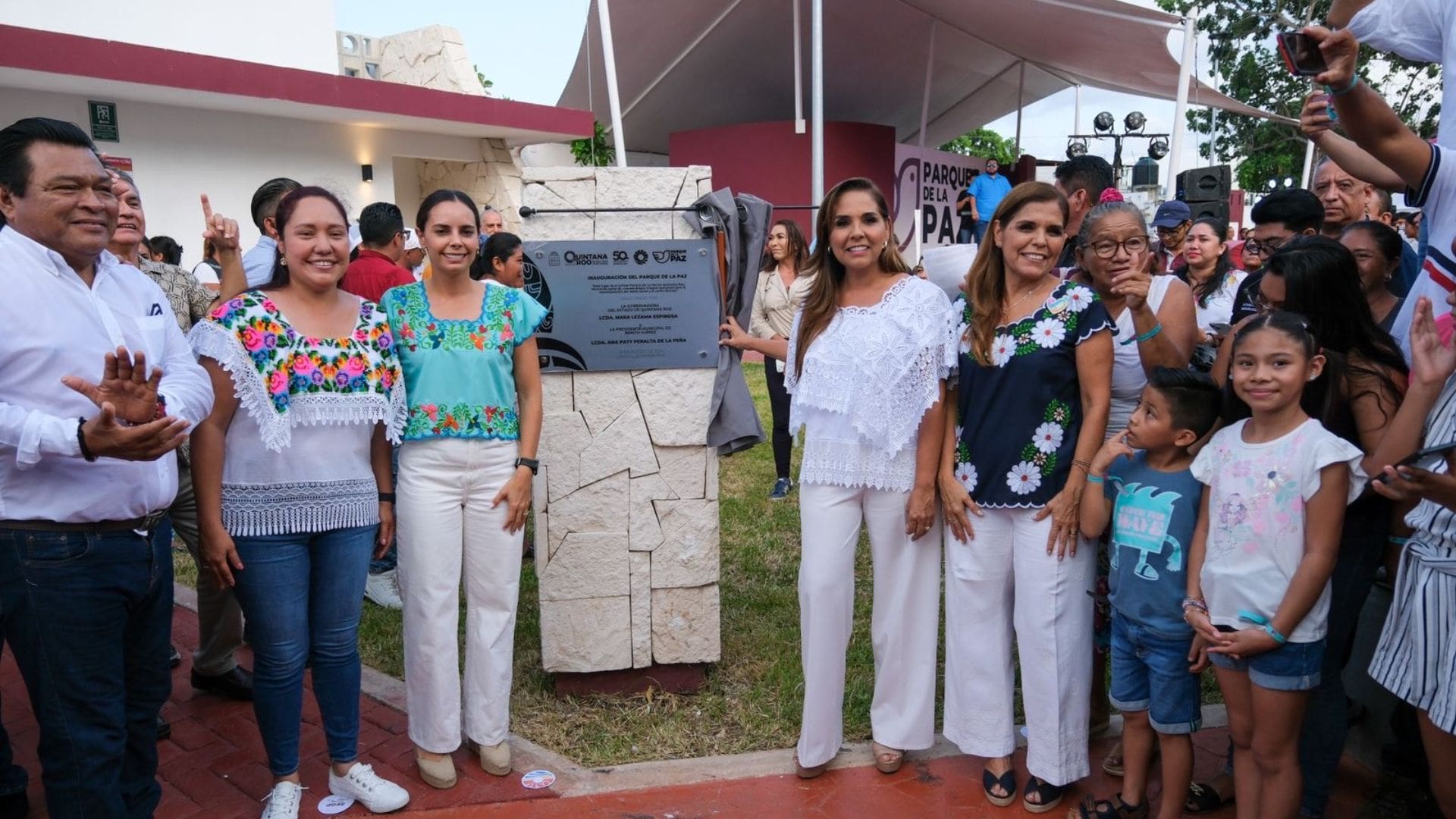 Cancún.- En un ambiente familiar, de convivencia, de construcción de paz, la gobernadora Mara Lezama Espinosa inauguró el Parque Cultural Urbano de la Paz en Cancún, ubicado en Villas Otoch Paraíso y con inversión cercana a los 19 millones de pesos, con beneficio directo para más de 11 mil 494 cancunenses.