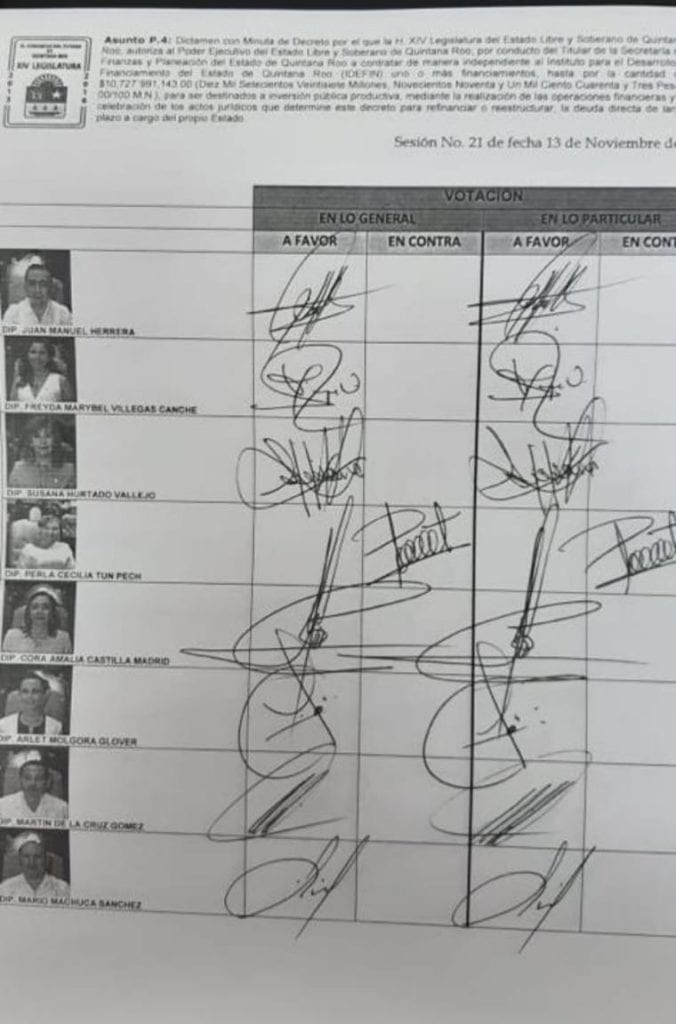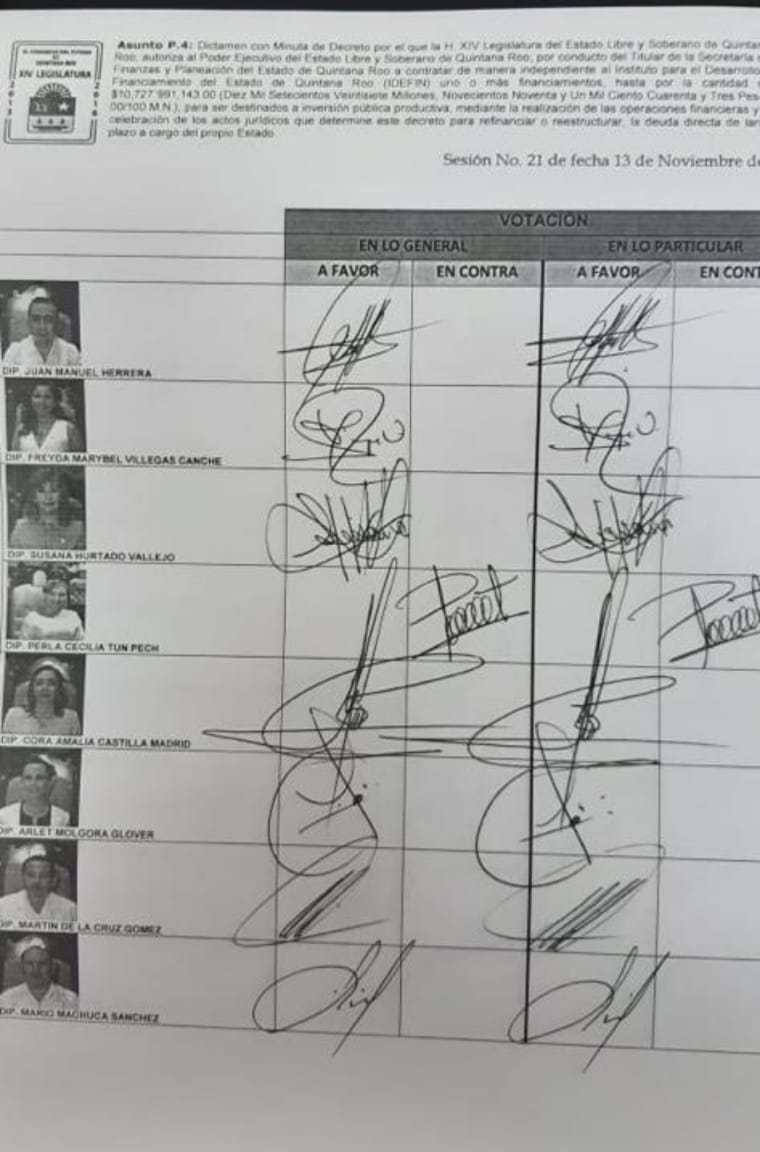 Además, en junio de 2016 y en medio de inéditas protestas, como parte del Congreso de Quintana Roo aprobó la contratación de uno o más financiamientos por 1,030 millones de pesos para el municipio de Solidaridad, que arrastraba una deuda de 758 millones de pesos que lo convirtieron, desde 2015, en el municipio con la deuda per cápita más alta del país.
