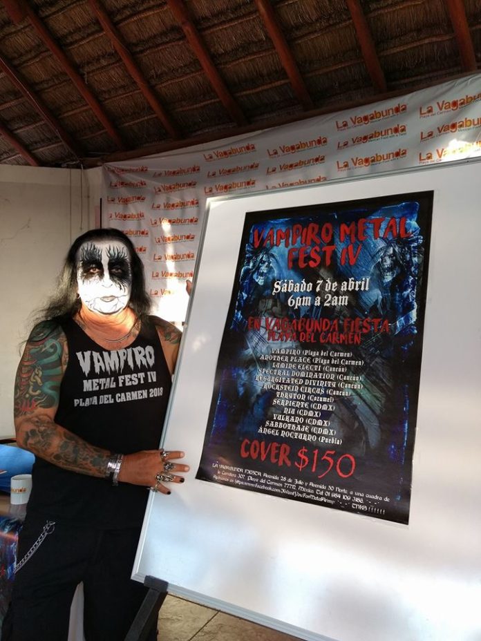 Playa del Carmen,QRoo.-Los amantes de la música y el metal podrán disfrutar en esta ciudad del Vampiro Metal Fest IV, un evento que reunirá a más de 12 bandas de varios subgéneros de este estridente ritmo en una electrizante noche.